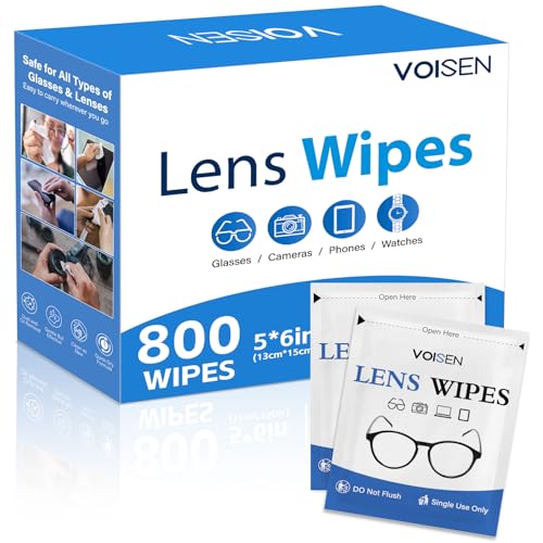 VOISEN Lens Wipes for Eyeglasses,800 Pack Eye Glasses Cleaner Wipes,Pre-Moistened Individually Wrapped Lens Wipes,Non-Scratching Non-Streaking,Safe for Eyeglasses, Goggles, Camera Lens, Phone