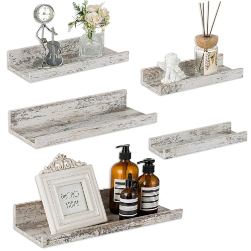 Walasis Rustic Shelves Wall-Mounted Distressed White – Farmhouse Wall Shelves 15.8 inch Wood Wall Decor Decorative Small Floating Ledge Shelf for Bedroom Living Room