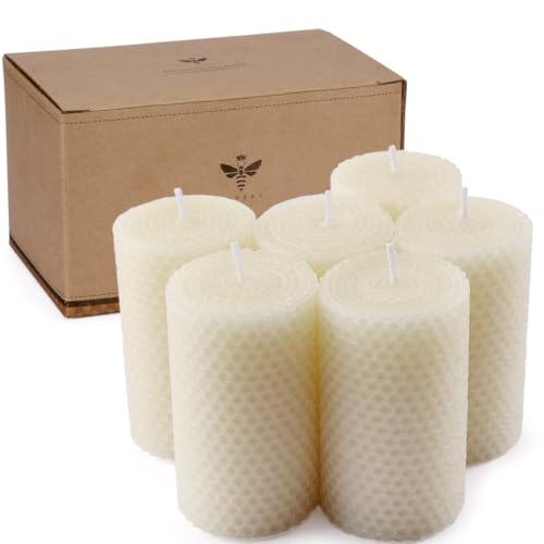 White Beeswax Pillar Candles Set of 6-2×3.3 in Handmade Pure Beeswax Rolled Candles for Gift & Home Decor