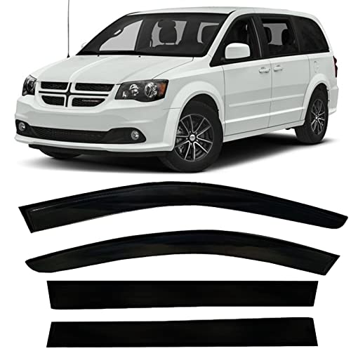 Window Visors rain Guards Vent Deflectors Fit 08-18 Chrysler Town & Country/Dodge Grand Caravan, Smoke 4pcs