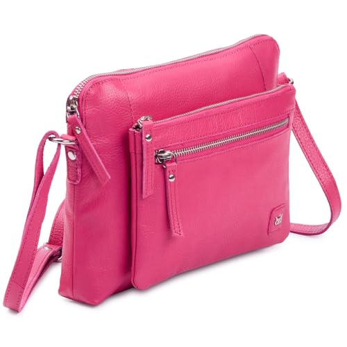 Wise Owl Accessories Small Soft Pebbled Real Leather Crossbody Handbags Purses Triple Zip Premium Sling Crossover Shoulder Bag for Women Gift (Hot Pink Nappa)