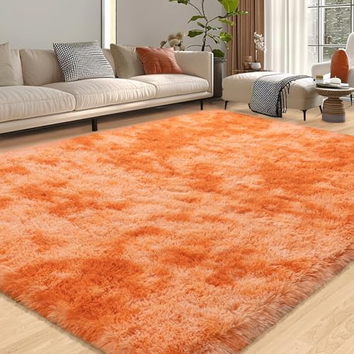 WISH TREE Large Shag Rugs 8×10 Feet Fluffy Rug for Living Room, Big Soft Orange Tie Dye Fuzzy Plush Shaggy Rugs for Bedroom Girls Kids Room Dorm Indoor Modern Home Decor