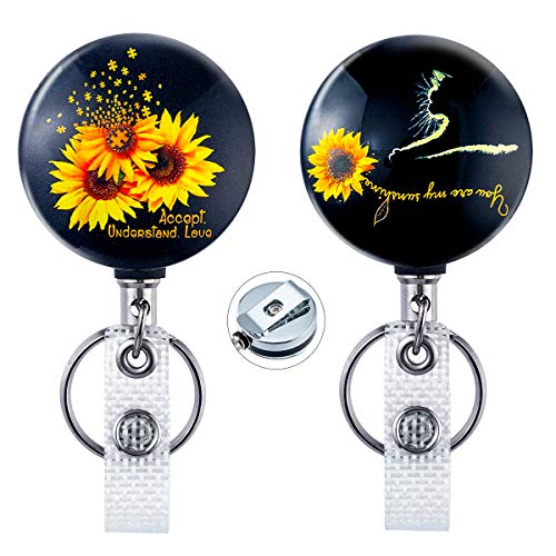 - ★【Stylish & Durable】: Elevate Your Daily Style with Elegance.The Sunflower design adds a distinct and elegant touch. Made with a robust zinc alloy and equipped with a 24.8″ strong steel wire cord, this badge holder boasts durability, enduring over 100,000 pulls with ease.