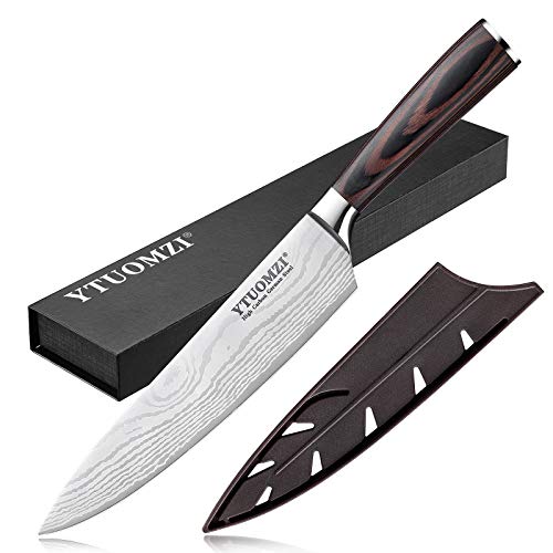 Ytuomzi 8″ Chef’s Knife, Professional 8-inch Chef Knife with Sheath, German High Carbon Stainless Steel Kitchen Knife for Home Cooks & Culinary Experts, Ergonomic Pakkawood Handle, Gift Box