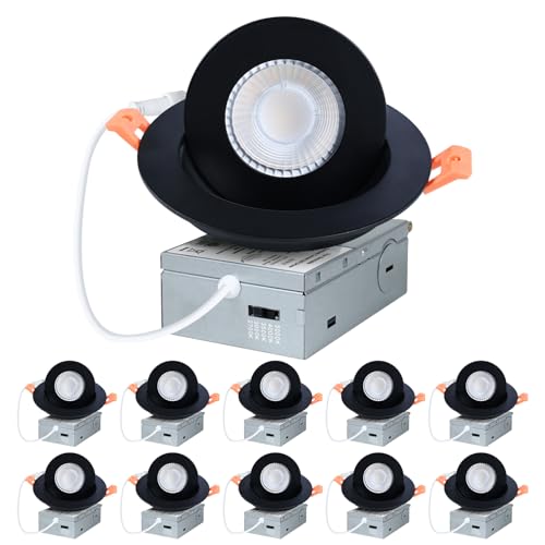 ZYC Black LED Recessed Light: 4 inch Gimbal LED Recessed Lighting Swivel Downlight 9W 800LM 360° Rotation,Directional Adjustable Eyeball Soffit Light,Swivel Ceiling Spotlight,Pack of 10 Black.